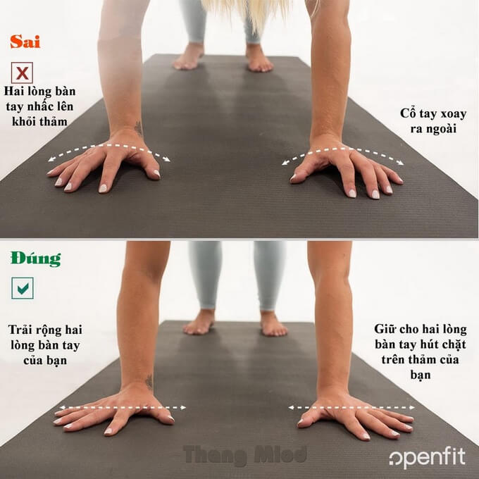 - Cách khắc phục: Trải rộng hai bàn tay và xòe rộng các ngón tay của bạn. Giữ cho hai lòng bàn tay của bạn hút chặt trên tấm thảm tập.