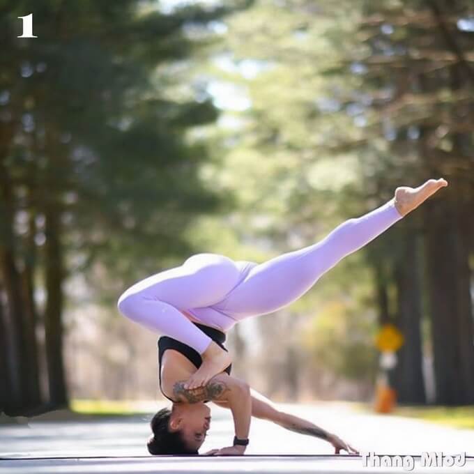 1. Cái Tư Thế Điên Rồ Này được gọi là biến thể của tư thế Đứng Bằng Đầu (Headstand). Nó khiến tôi đặt câu hỏi về, "Những cách thức mà cơ thể con người có thể chuyển động?". Tôi thực sự không biết điều gì đang xảy ra ở đây, nhưng tôi biết rằng, "Chắc chắn tôi sẽ chết nếu thử nó!".