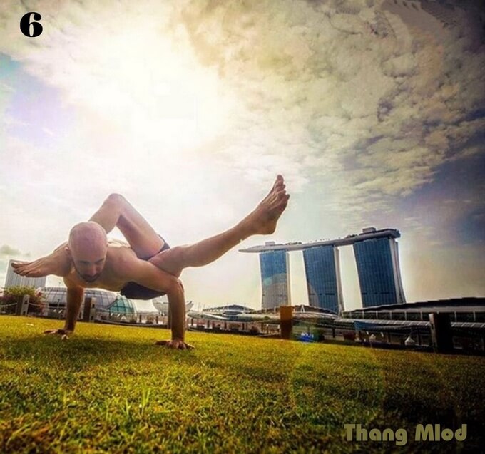 5. Tại sao bạn phải thực hiện tư thế Bọ Cạp trên cẳng tay trong khi anh chàng này có thể thực hiện nó trên BÀN TAY? Nó còn được gọi là tư thế "Buổi Tối Thứ Bảy", khi anh ta đang đợi người yêu mình nhắn tin lại. Thật tuyệt vời!.