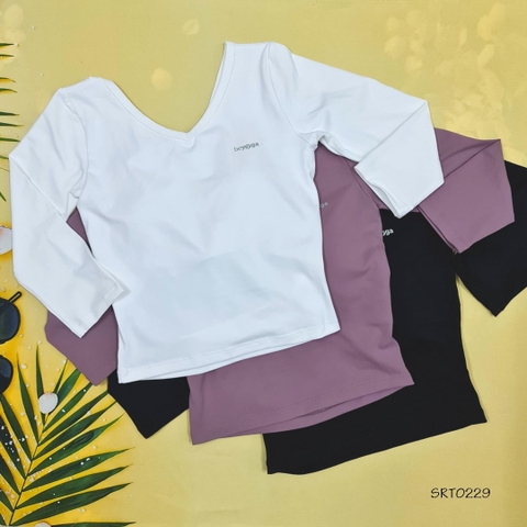 Áo tập yoga crop top SRT0229 beYoga được thiết kế với ống tay lửng, điểm nhấn là vạt chéo sau lưng nữ tính, điệu đà. Áo tích hợp sẵn miếng lót ngực có thể tháo/lắp, chất liệu dày, mềm, mịn, co giãn 4 chiều, thấm hút mồ hôi và khô nhanh.