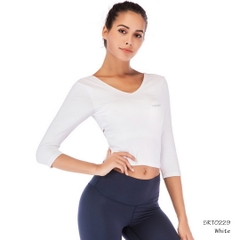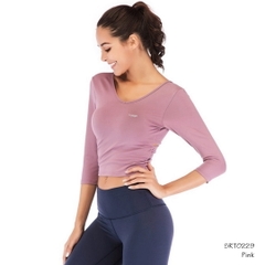 - Thiết kế: Dáng crop top tay lửng, tích hợp miếng lót ngực có thể tháo/lắp.