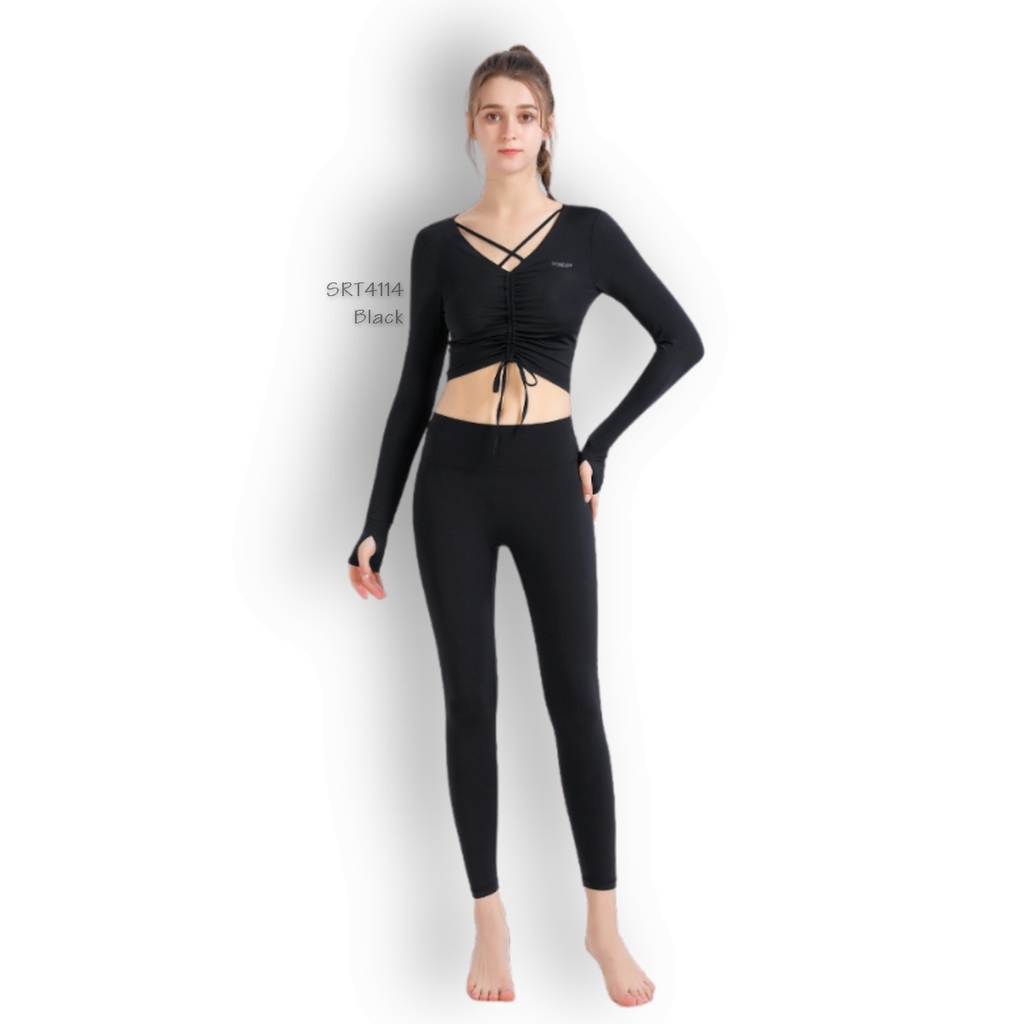- Thiết kế: Áo dài tay, tích hợp sẵn bra với miếng lót có thể tháo lắp.