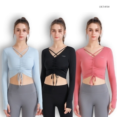 Điểm nhấn là thiết kế dây rút phía trước nhẹ nhàng và nữ tính, áo được tích hợp sẵn Bra bên trong với miếng lót ngực có thể tháo/lắp. Chất liệu thun nhẹ, mềm, mịn, mát, siêu co giãn, khô nhanh và thấm hút mồ hôi tốt.