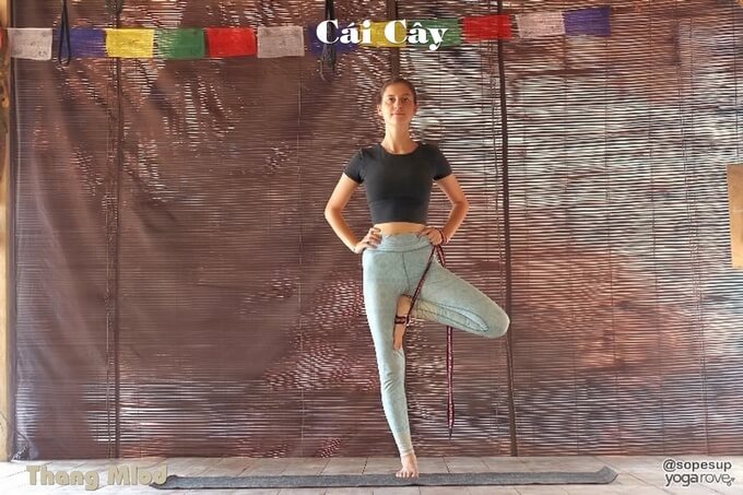 Cái Cây là một trong những tư thế giữ thăng bằng mà bạn được học khi mới bắt đầu tập luyện. Bạn không nên đặt bàn chân lên đầu gối của mình. Bạn chỉ nên đặt bàn chân ở bên trên hoặc bên dưới đầu gối. Vì vậy, hãy sử dụng dây đai yoga để hỗ trợ bạn thực hiện tư thế này một cách tốt nhất.