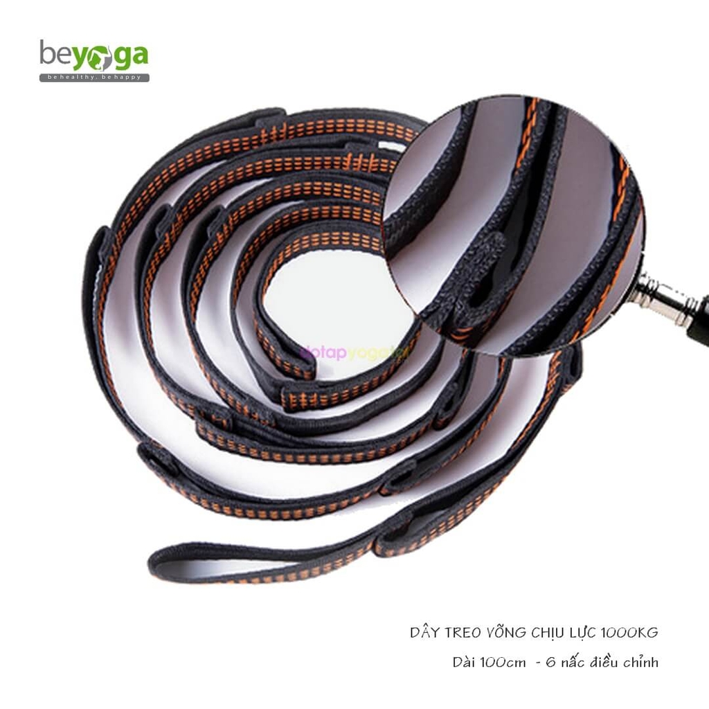 - 02 dây treo chất liệu dù chịu tải 1000kg, dài 1m với 6 nấc để bạn có thể điều chỉnh độ cao của võng tập.